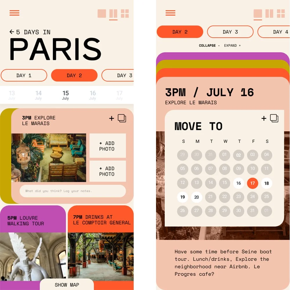 Make travel decision making easier. Don’t disrupt the daydreaming, develop a custom itinerary organizational tool where mile-long Google docs and excel sheets are replaced. Itinerary planning can be a cumbersome and time-consuming task. Travelers need a way to aggregate information that is scalable from a solo-traveler to a large party. Ideas and itineraries can be shared with friends in a fun, collaborative, digestible way.