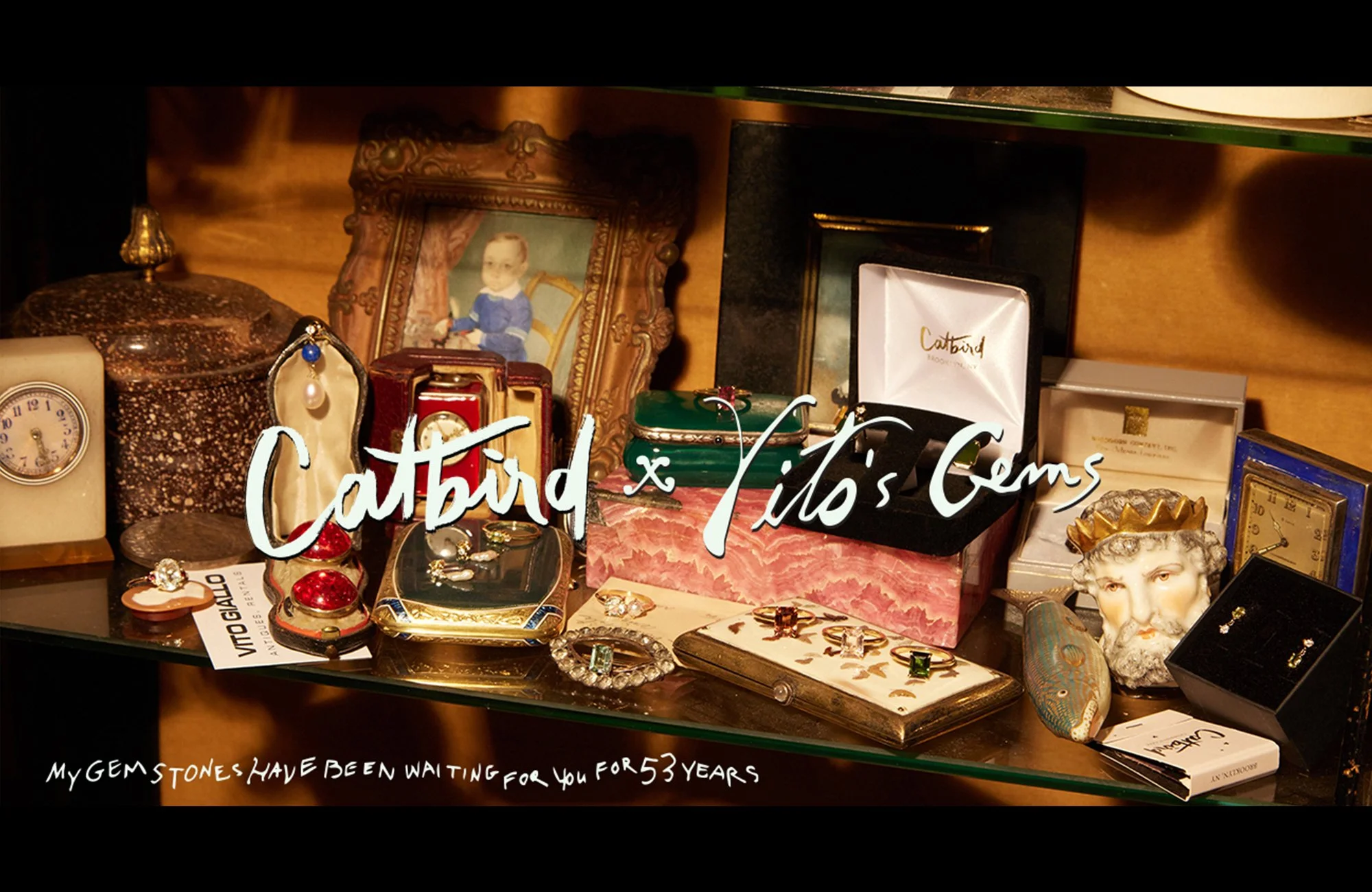 Catbird x Vito's Gems, is a collection of limited edition and one-of-a-kind jewels inspired by Vito’s New York, nights at the ballet, Joseph Cornell boxes, antiquities, Venetian mirrors, his erstwhile shop on Madison Ave, an end-of-day martini at Bemelmans Bar, museum vitrines, and the arc that connects the past to the present.